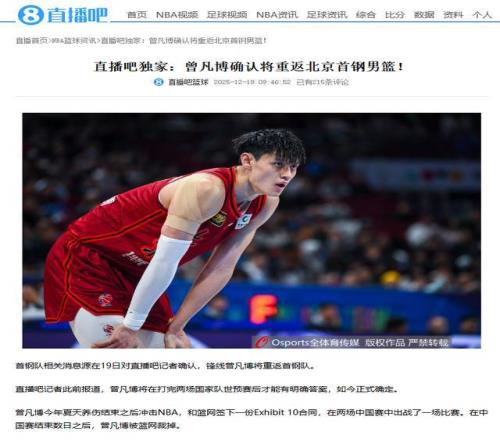 定了,出口转内销,曾凡博回归北京首钢,CBA另外19队争夺总亚军